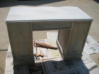 Cute little desk found on Freecycle with a small amount of damage that was easily corrected. Just because I'm a little bit proud of the color, I'm posting the pics before the project is finished. Is that a no no? Oh well, please forgive me :-) I just couldn't help myself!